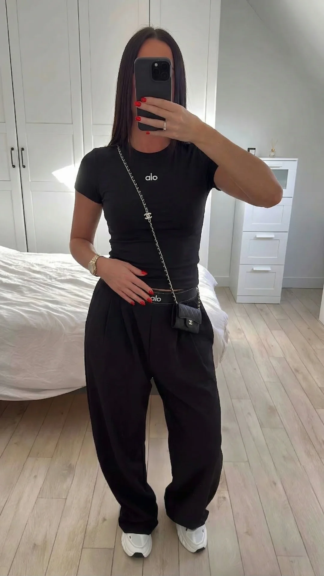 J’ai pris le Tshirt noir avec le pantalon Alo Yoga noir et les deux font un bel ensemble. Satisfaite de mon achat. Je recommande !